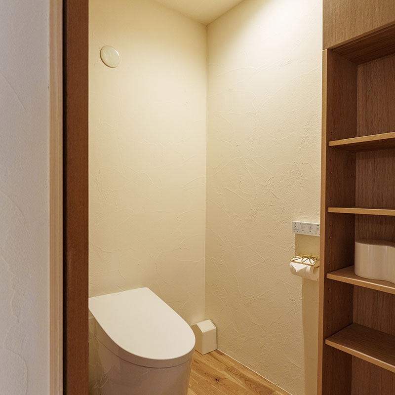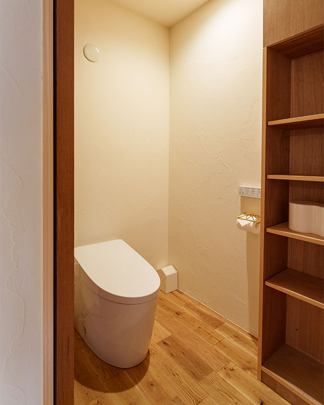 また珪藻土塗り壁材の消臭・除湿効果でトイレの悩みを解決。そしてお好みの最新式トイレへと交換(*オプション)して、冬はもちろんオールシーズンに快適な空間へと変身させます。