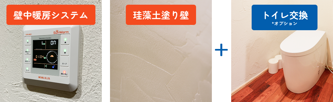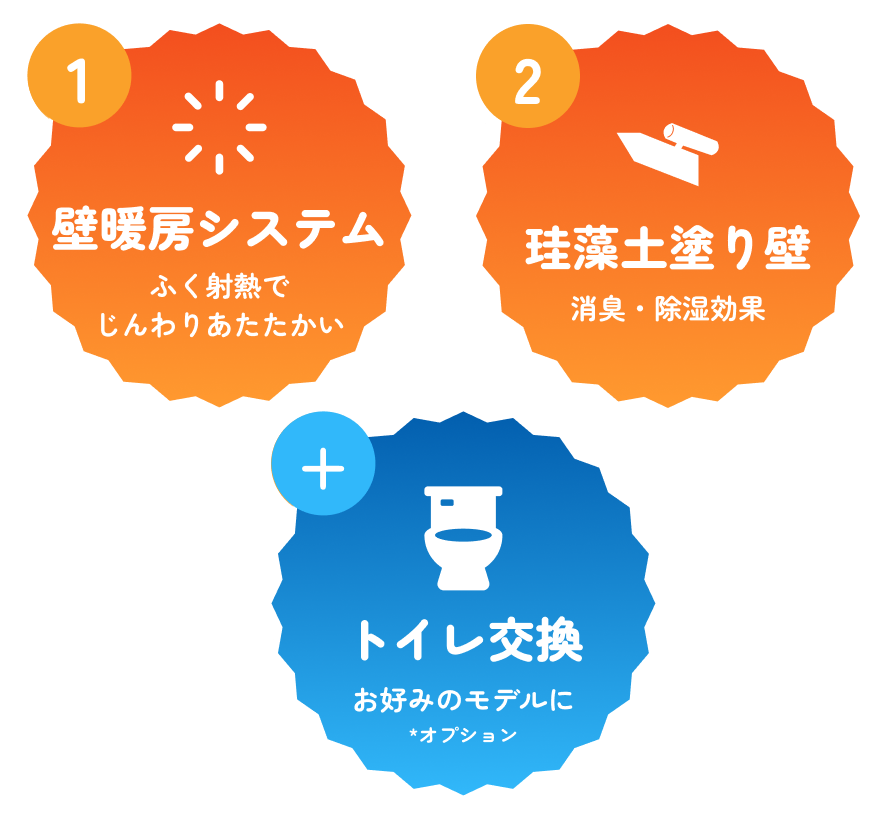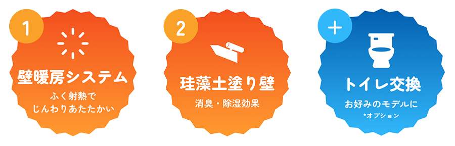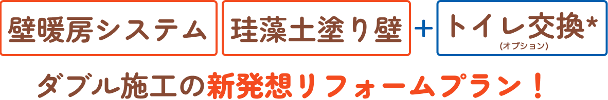 壁暖房システム・珪藻土塗り壁施工・トイレ交換*がセットになったリフォームプラン「ヒートショック・バスターズ」!